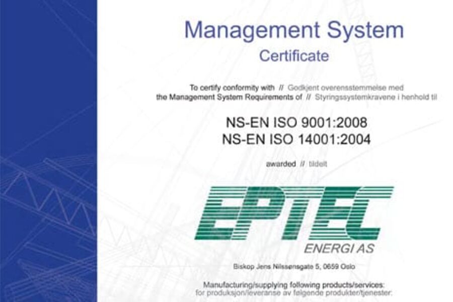 EPTEC Energi AS er ISO - og PED sertifisert
